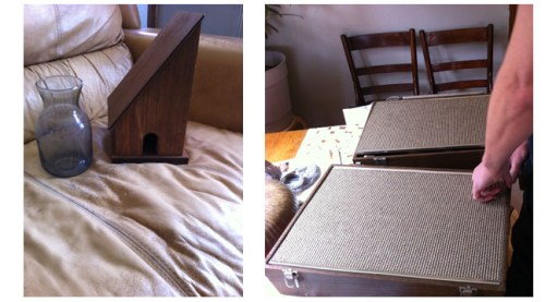 The vase and bird house were $2 each and I think the portable speakers were $8. JT pried them open when we got home and sure enough, all the parts were in there. He’s going to iPod wire them and I think they might go traveling with the Rumble Fish (aka Fairlane). They fold up together like a little speaker suitcase. I’ll post more on the speakers when they’re up and running.