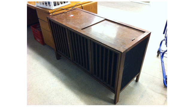 And so we were headed home empty-handed and I had $20 burning a hole in my pocket from a recent Craigslist sale . . . then I remembered a St. Vincent de Paul had recently relocated to our South City neck of the woods into what had been a dingy old Office Depot.