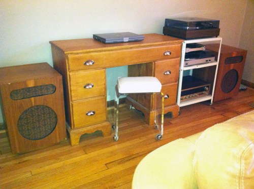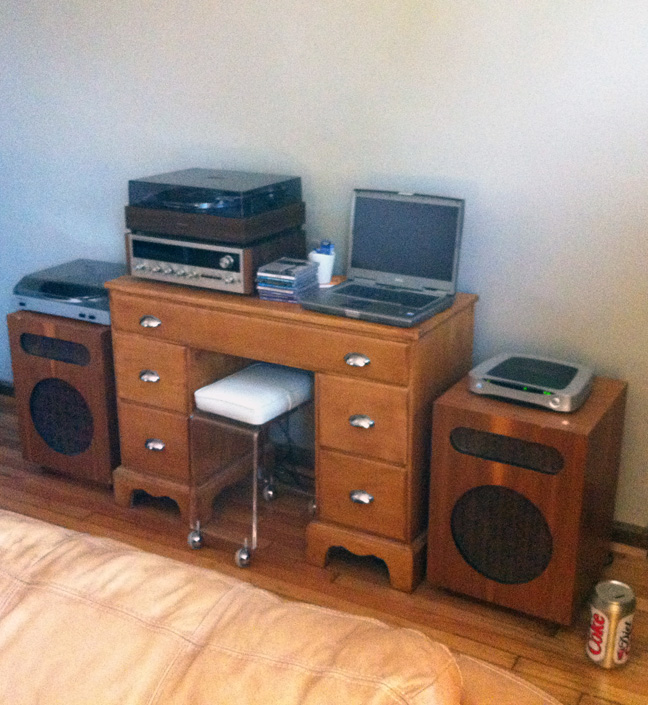 My dad built the speakers from a kit back in the day. Everything had been hanging out in my parent’s basement for a while, being badly abused by us kids. Thanks to Craigslist, I ended up with a visit from Zaw Win who owns Alpha Tech Electronics. He restored the set back to life and we’ve been enjoying it ever since.