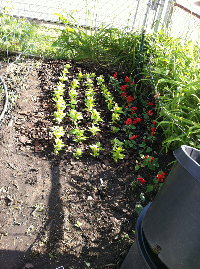 We only used about 2/3 of the garden for produce this year. Last year we bit off more than we could chew and it got real weedy. The neighbors gave us some extra flowers they had bought and didn’t have space for so we planted them in the back 1/3. Most of them didn’t make it. We are kind of bad neighbors.