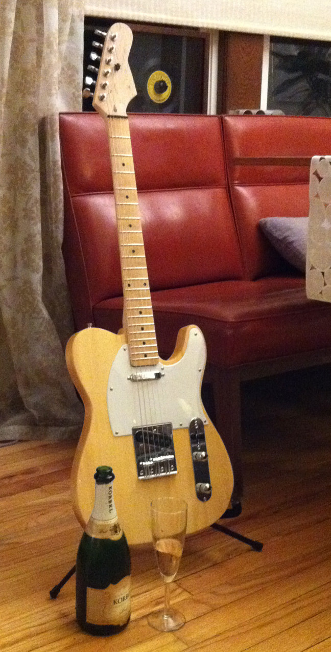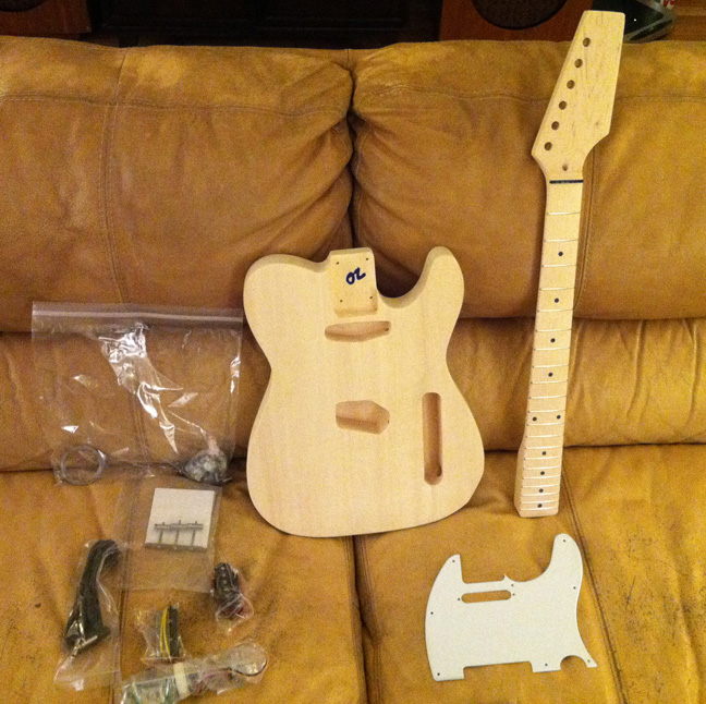Get this — he made a guitar! This will be his third Telecaster . . . there’s a story in there about the revolving door of guitars but I don’t even have a full recollection of all of them and I don’t know if JT does either . . . At any rate the first two were purchases but this one arrived like this . . .