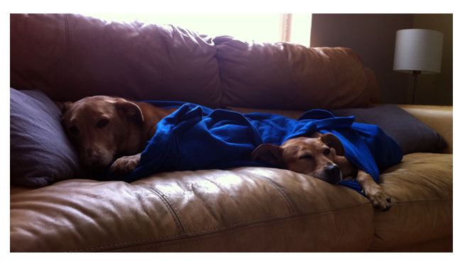 We adopted her when she was about two so Shenanigan would have someone to hang out with. And hang out they do . . . I’m pretty sure this is how they spend all day while we’re at work . . .