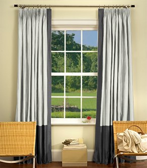 In an effort to save money, I am considering working with what I have (or some of it at least.) After my pleasant run-in with iDye earlier this year, I’m thinking I might dye the panels to match more of the color scheme that I have going on in the room. Then I want to mount the curtain rod higher, let out the bottom seam and add a color band to the bottom of the curtain to make it a proper size to address this wall.
