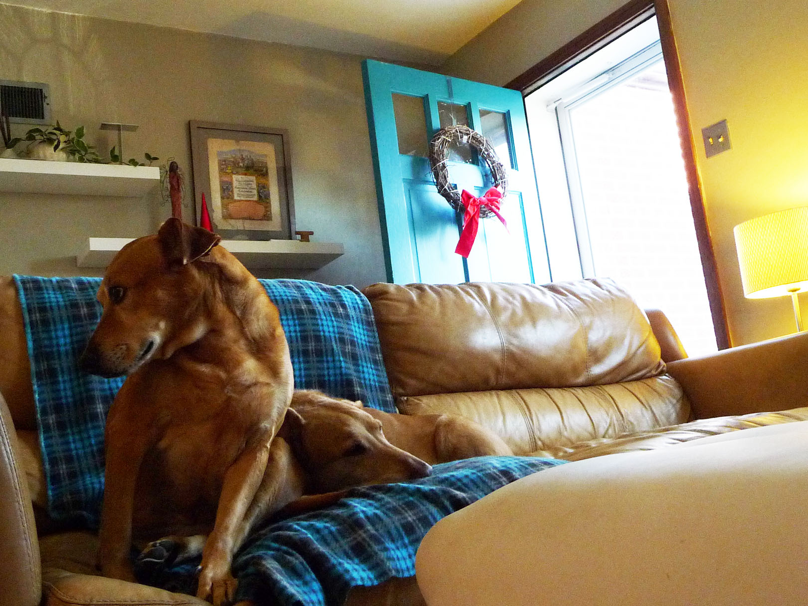We do have these two helpful mutts, who posed on the new fleece blanket all day.
