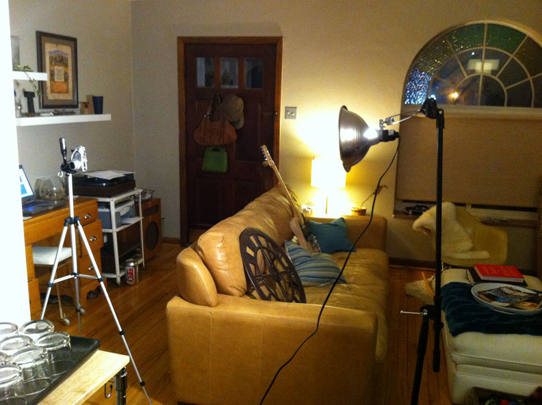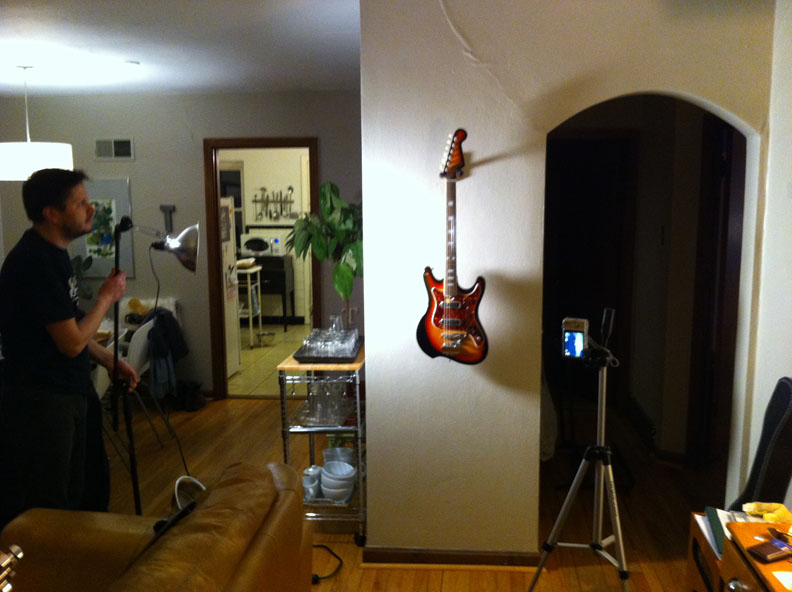 Here’s some outtakes from the living room session.  The guitar didn’t show well against the wall so we abandoned these shots.  It was total chaos and we almost completely destroyed the whole house moving things around and plugging our little work lights into various outlets and clamping them onto various things.