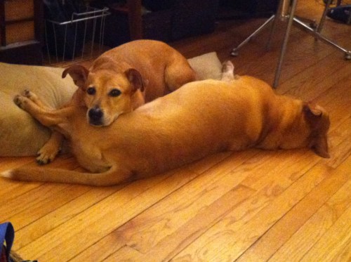 They are some silly, lazy dogs! We have been calling it “D.I.Y Day” too to be more politically correct, but I intend to do as much bitchin’ as stitchin’! You can have an NYC Stitch-n-Bitch chapter. Heck, that probably already exists!
