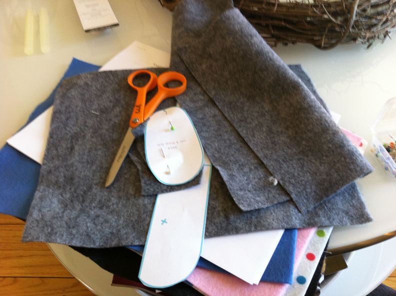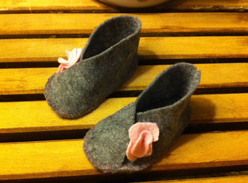Now to me. . . . everyone I know seems to be having a baby girl. So baby presents were in order. I saw this adorable felt bootie pattern on Purl Soho’s website and wanted to try it out.
