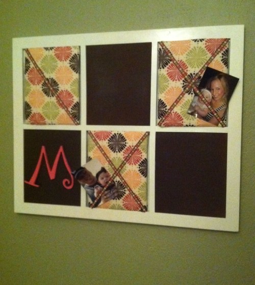 She made a gorgeous little picture display for her little girl, Mila’s room. She texted me a picture after, and I think the pictures of Mila with her mommy and daddy are what make it extra cute. I love the fabric and ribbons and really, the overall pink and brown scheme they did for Mila’s room – very sophisticated but fun.