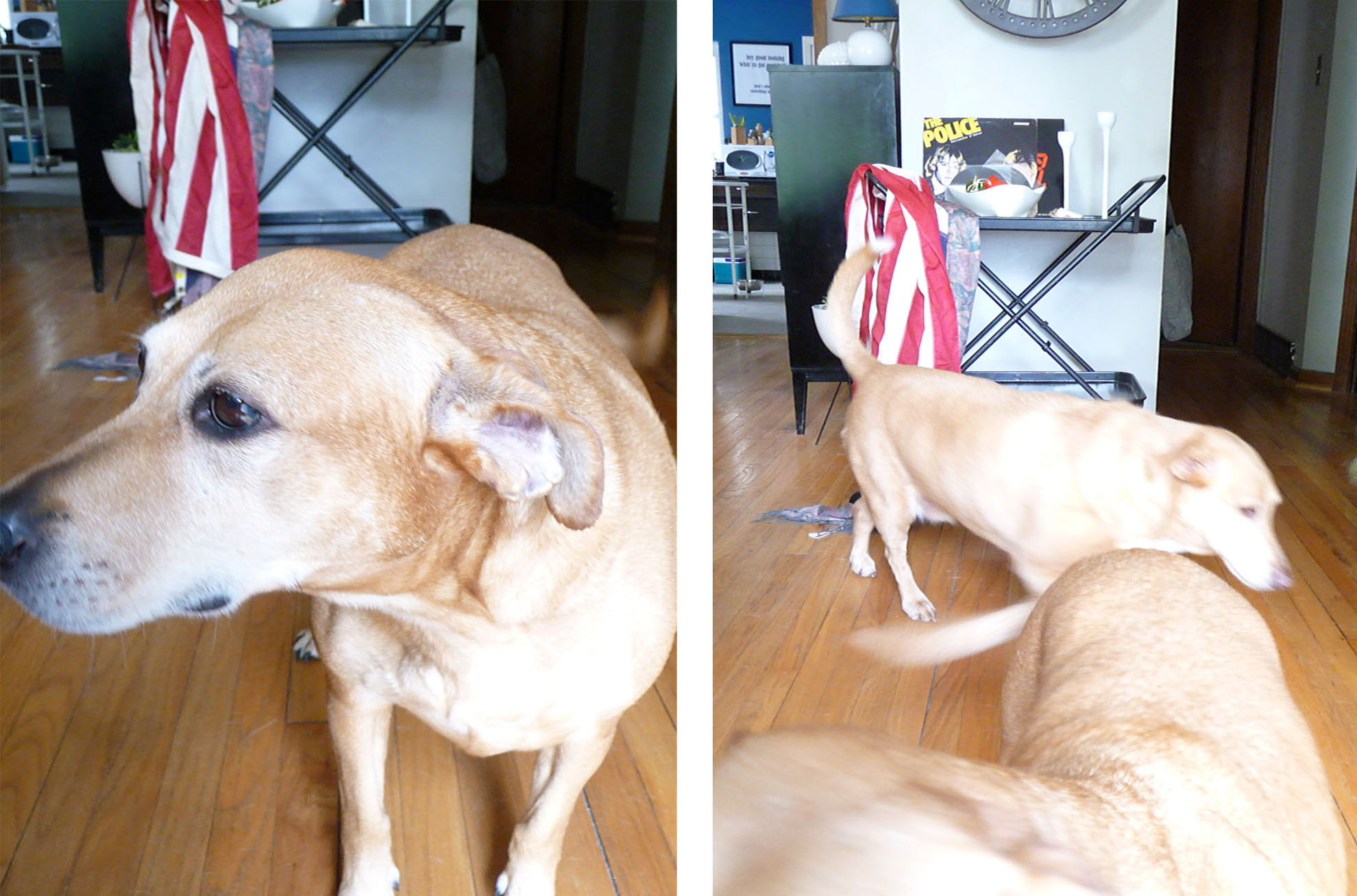 And here is what happened when I started this photo shoot. . . first one dog comes nosing in, then two . . .