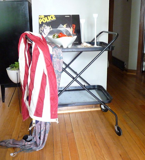 The bar cart was only $15 and I couldn’t resist it. It needs a little cleaning — the lady I bought it from said when she found it, it had contact paper from the 70s covering up all the black and white retro star goodness. But I think I’m going to put it in my back porch and use it as a potting bench of sorts so it doesn’t have to be too clean.