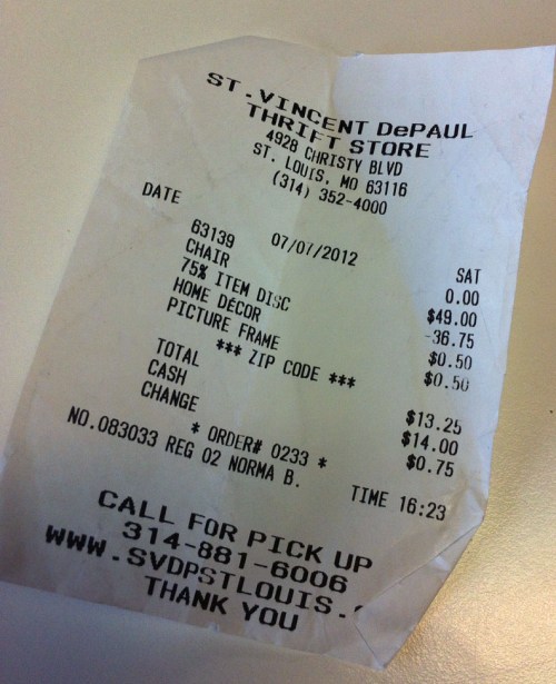But lo and behold, when we went to check out, it was 75% off!! The chair and ottoman were only $12.25 (before tax!) Into the SUV it went.