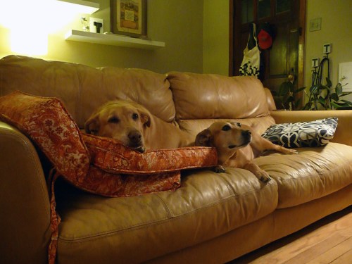 No post of mine would be complete without gratiuitous dog images, so here is what Shenanigan did as soon as we removed the chair cushions to work on the seat. Quite the princess and the pea, isn’t he?