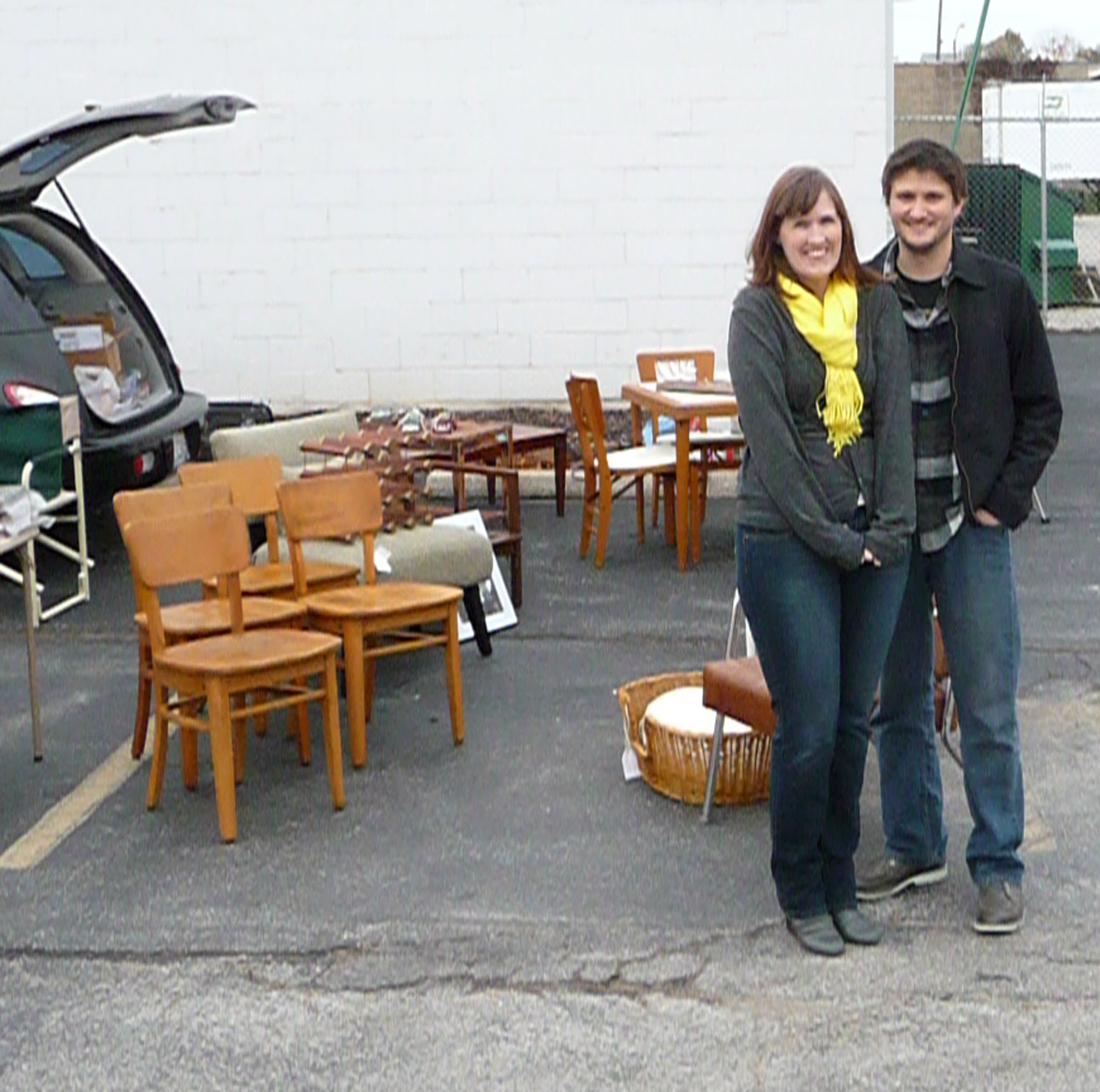 I am happy to report that the majority of things sold.  I was surprised at the things that didn’t — the four schoolhouse chairs and the brown vinyl chair with the great chrome tube legs came back home to Living Analog.  One couple ended up buying a few of our “projects” — the MCM walnut chair without cushions, a side table that was still halfway green and halfway bare wood and the alley cat zebra scratch chair I clumsily attempted to reupholster.