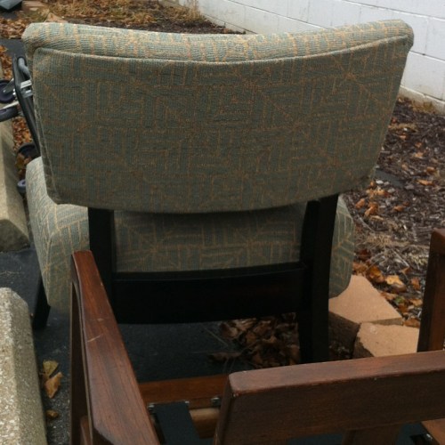 It didn’t turn out well and with the timeline and the amount of fabric I had, I couldn’t go back.  I was tempted to just put it back out in the alley but instead I brought it to the sale and gave the couple full disclosure before they paid up (it was priced at a whole $5 after all).  They were able to live with the clunky back and might just drape a nice throw blanket on it.  Problem solved.