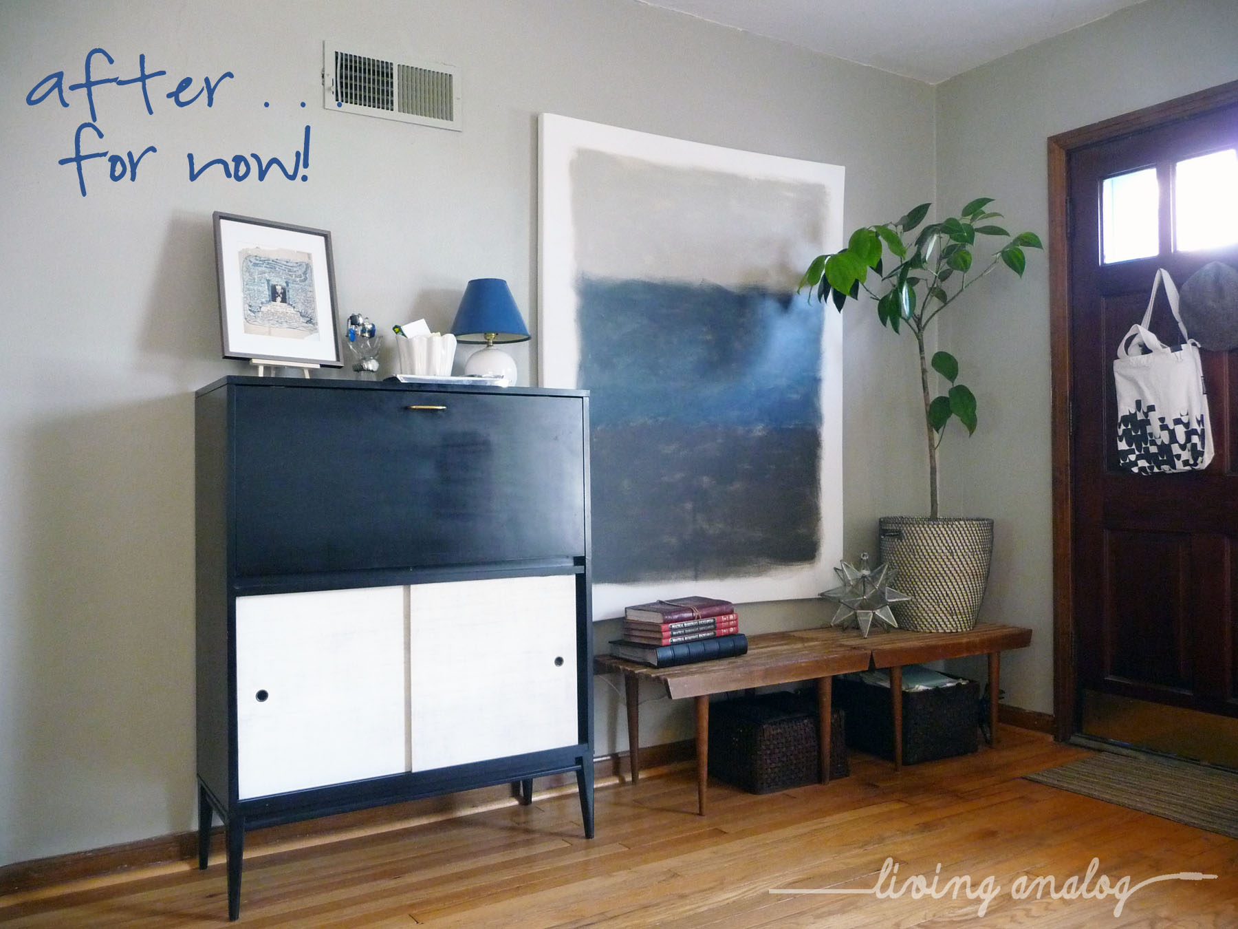 I don’t know if I was born this way or if it something I developed, but I have a real and abiding affection for rearranging our house all the time. Like last Friday at 9:00 at night. JT is trying to watch a music documentary and I’m buzzing around the house, looking for something to tinker with. Sometimes I just can’t stop!