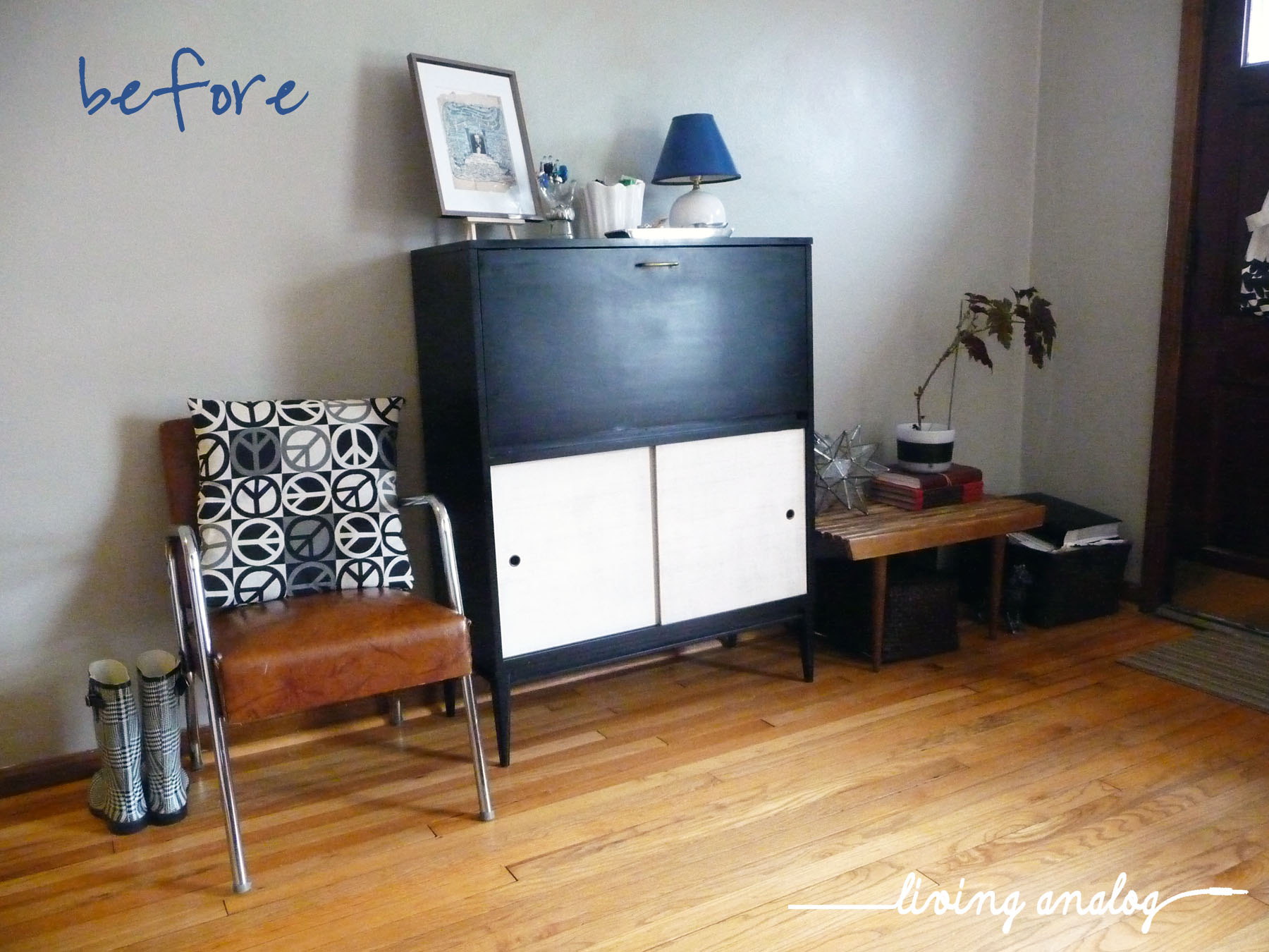 So I found a place for it in the living room! Yep, the before I’m about to show you I had labeled as an “after” all of two weeks ago. Hold on to your seats, it’s going to be a bumpy ride.