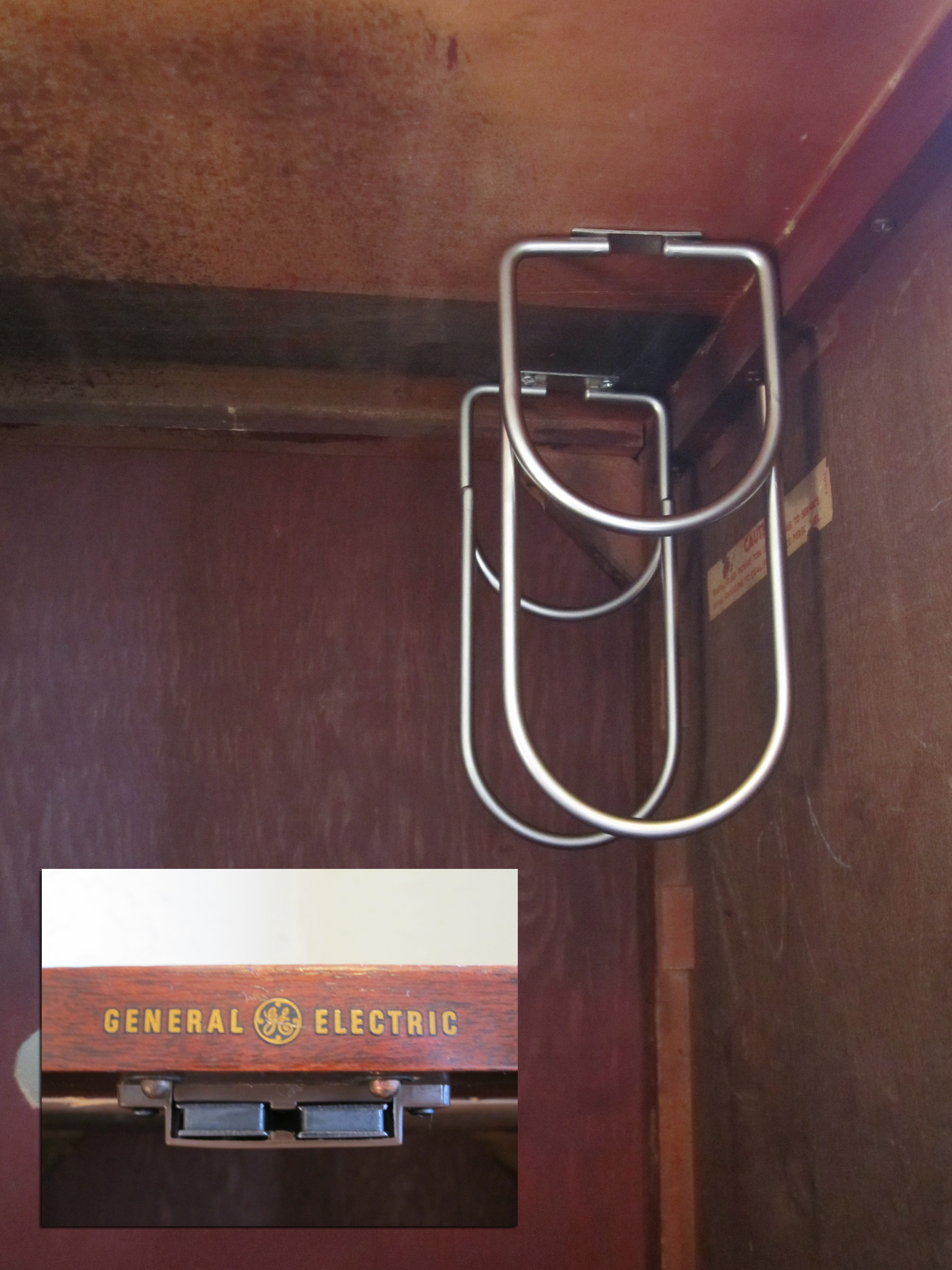 I started by putting in felt on the bottom (with rubber shelf liners underneath) then added a magnetic closure with metal plates since the existing ones weren’t very reliable and caused the doors to buckle inward.  I filled in some cracks with wood putty and stain (especially on the top of the doors where the old closures wore at the wood).  I attached the wine bottle holder then the stemware rack and then filled it with my goodies!
