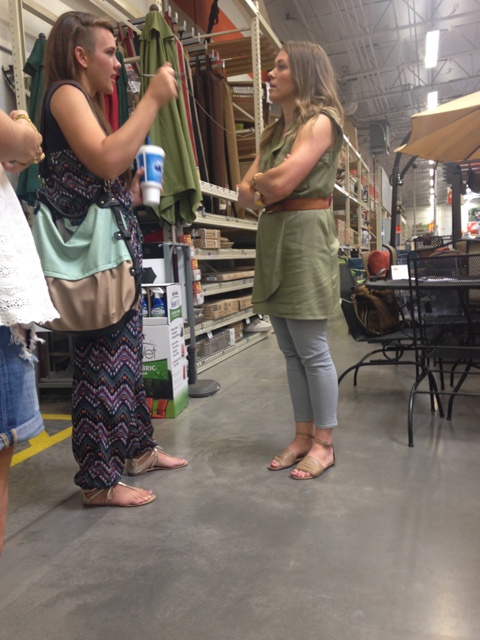 Friday night while JT was out doing a band audition I met the mouse and went to Home Depot for the traps.  The next morning found me back at the Depot for a lighting class and meet and greet with (now) local blogger Jenny Komenda from Little Green Notebook.  The actual class went a little sideways and no one else took photos so I grabbed this shot with furtive shame on my phone (that’s Jenny on the right in the green blouse).
