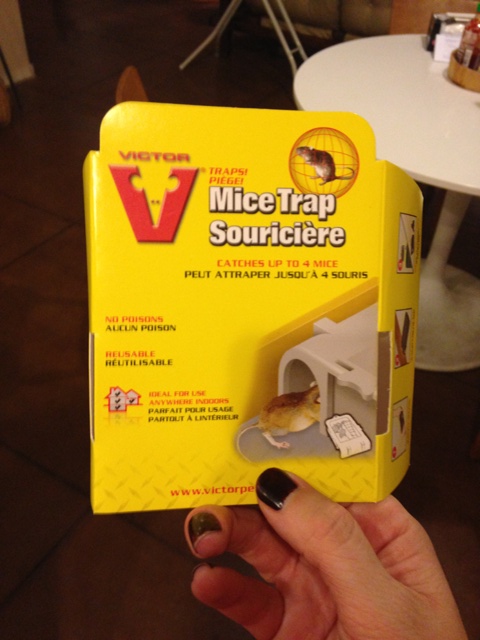 We have a field mouse hiding in our house somewhere . . . I’m trying to catch him with peanut butter and love but the next step will be JT taking over the offensive and his methods are not so sweet.