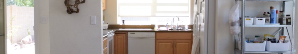 I envisioned walling it off towards the living room, and turning it into a large pantry accessible from the hallway side. One side of the wet bar is already a coat closet and since we currently have all three of our coats (used mainly for skiing in Flagstaff rather than used in Phoenix) in the laundry room, I thought we could open it all up into one large closet/pantry. I had dreams of an appliance garage and a mobile baking station and hiding oodles of clutter behind some kind of funky barn door system.