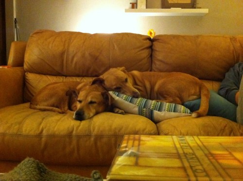 We’ve been hanging out in here all weekend. Sophie and Shenanigan stayed away for a while because all the furniture re-arranging seems to frighten them. But after things had been settled in for a little bit, they came sniffing around to see what was going on.
