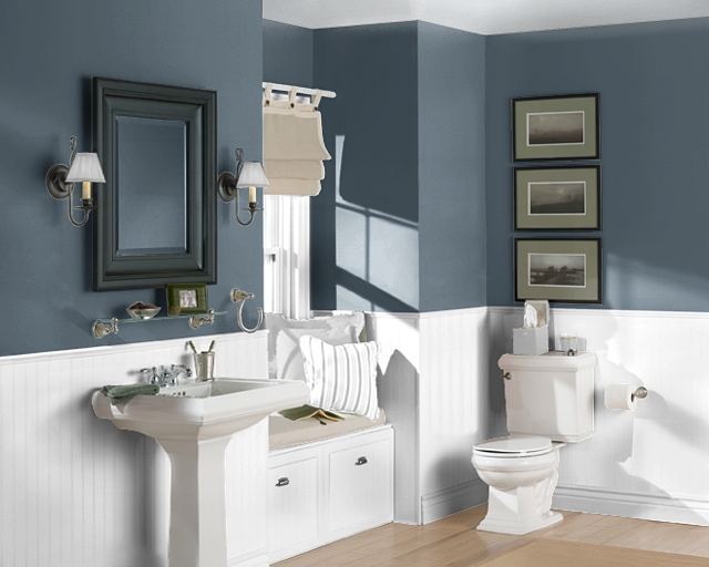 The dark color on the walls and ceiling has made the space much more dramatic. I also raised the shower curtain up to just below the soffit. The curtain I snagged at Target for $10 and then added a dark, grounding band to the bottom.