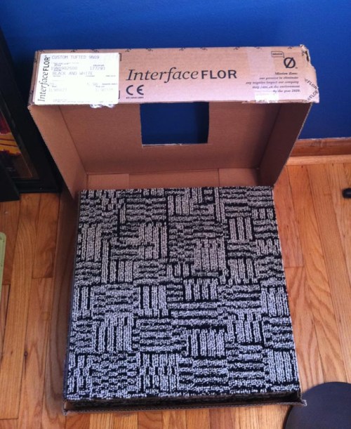 We put together the FLOR area rug and cleared out all the furniture orphans (banished to the basement with my ever-growing alley finds collection).