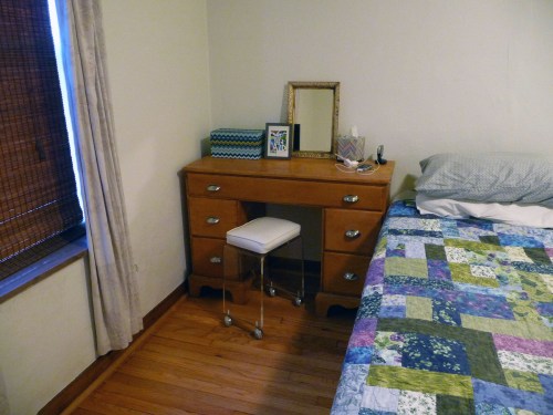 Here’s an outtake from my little photo shoot – Shenanigan was done with being photographed and wanted O-U-T of the bedroom. Tough luck little dude. The blue duvet cover and pillow shams came from West Elm about two years ago. Next steps for this room is a proper headboard – we still haven’t had one of those in almost 11 years of marriage! It would also be nice to upgrade our bedside tables and lamps as well at some point.