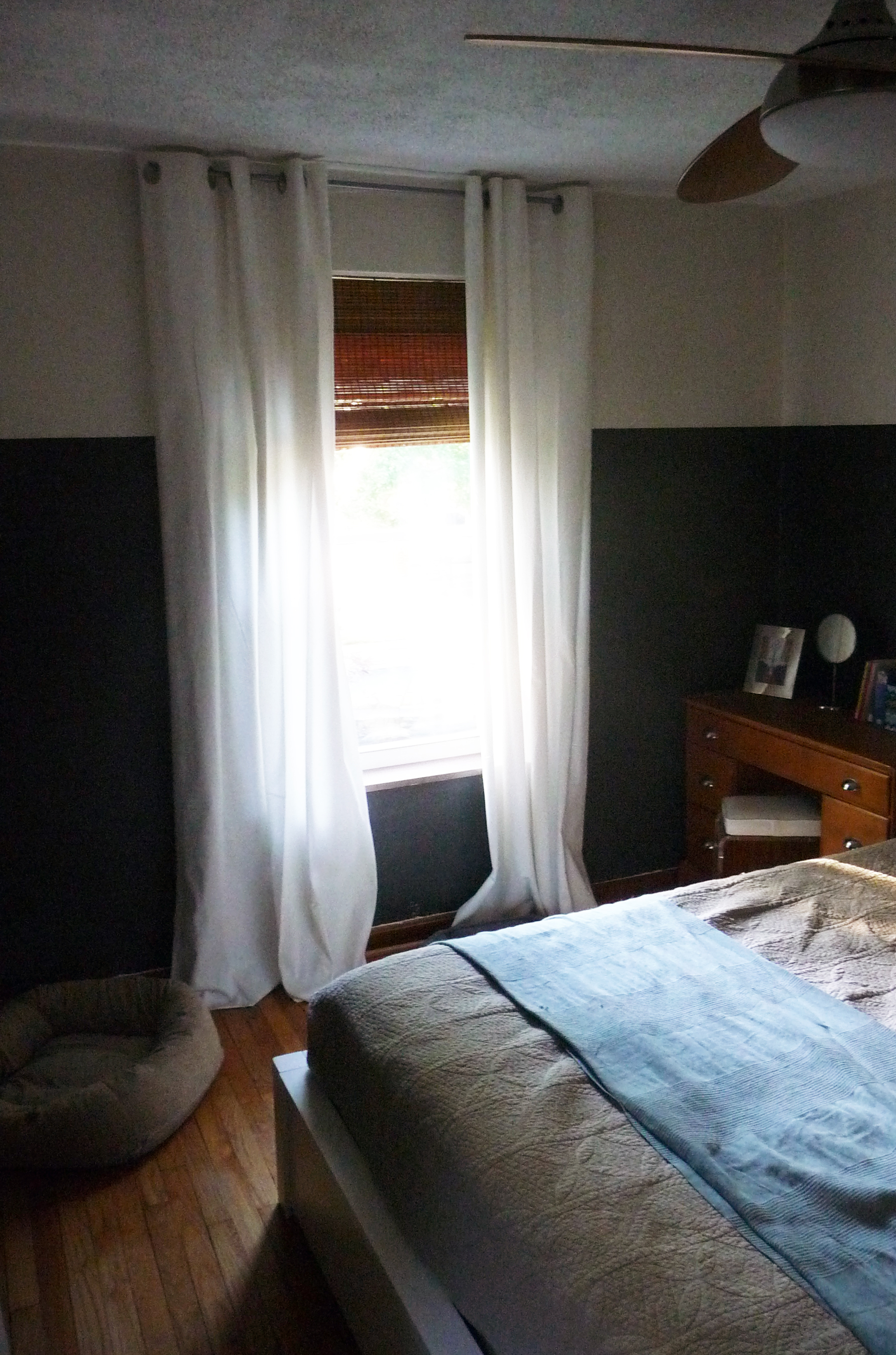Part of living in the desert means that all of the creepy crawlies that live outdoors would much rather live in your home. And the creepy crawlies out here are so much more terrifying than in the Midwest I have found. The long segue I am trying to make here is that we ended up moving into the guest bedroom for a time after we discovered a few scorpions living in our master bedroom. There was one in JT’s shoe which was stored in one of the under-bed drawers and another hanging out on the inside of the shower curtain one morning. Not cool. While we were waiting for the pest people to come back, we decided to go ahead and get the master bedroom painted. So here it is …