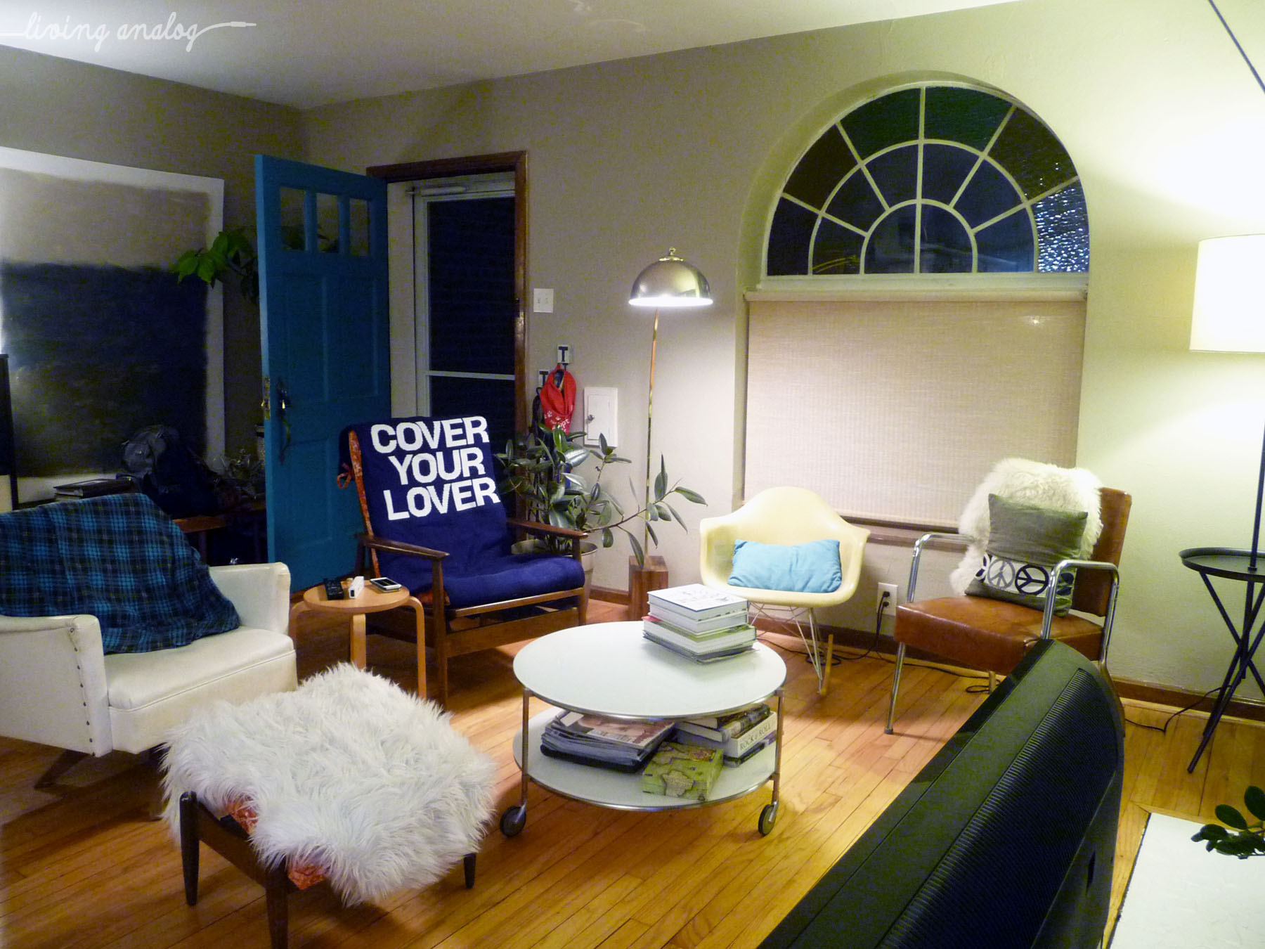 It started a while ago, when we got the new sofa. We’ve been loving this thing and basically live on it (I’m typing from there right now). We thought an upholstered ottoman might be more comfortable than the Ikea Strind for general lounging about – the Strind has two large glass panels that have somehow survived two moves but did take out JT’s smartphone once – and on a half-off Saturday at Goodwill we came across the perfect candidate. Will you look at that, it actually fit perfectly into the truck. (Can you tell we’re kind of in love with our truck? #trucknerds)